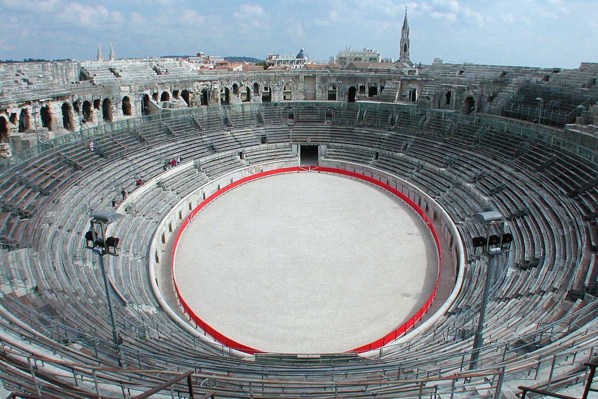 Imprégnez-vous de l'atmosphère des gladiateurs en visitant les Arènes de Nîmes, parfaitement conservées et encore utilisées pour des spectacles, des concerts de musique en été pendant le Festival de Nîmes, et des corridas qui sont très prisées lors des Férias.